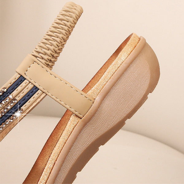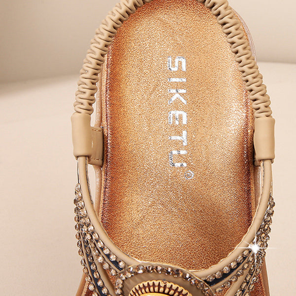 The eye-appealing details on the straps are contributed from various sparkling stones from tiny to bigger sizes, which are sewed with superior workmanship for long hours. This neatly made decoration guarantees to bring the most satisfying visual effect as long as durability for the sandals.